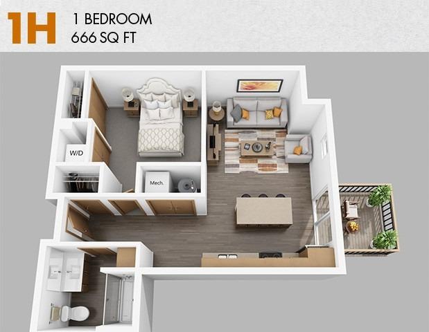 1 bed, 1 bath, 676 sqft
