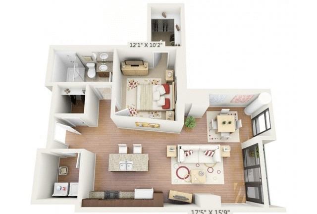 1 bed, 1 bath, 358 sqft