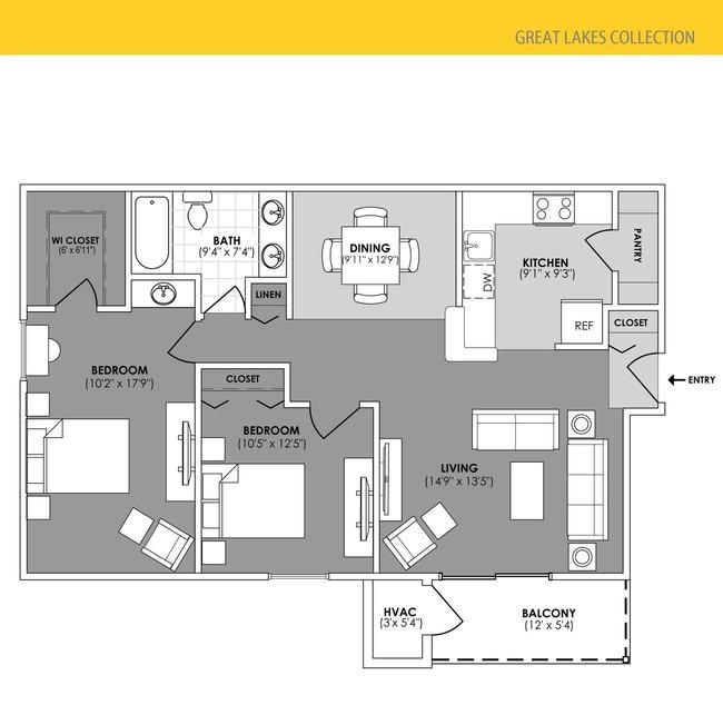 1 bed, 1 bath, 378 sqft