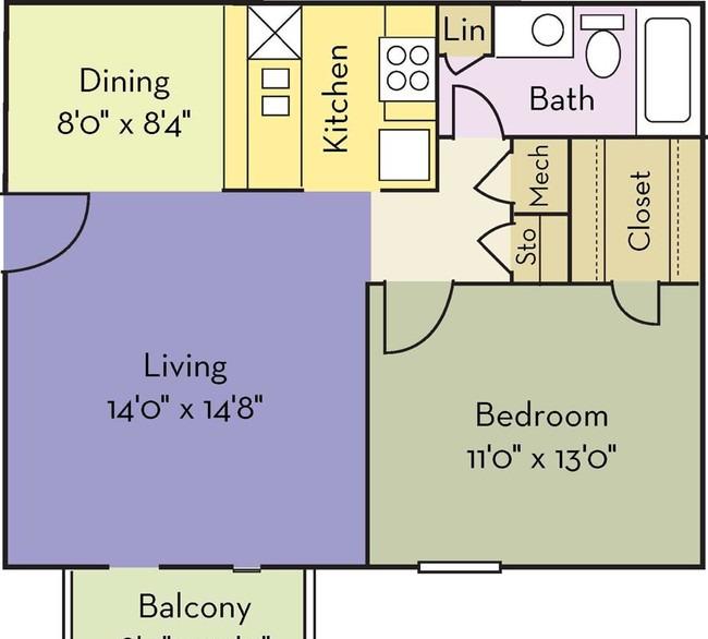 2 beds, 2 baths, 532 sqft