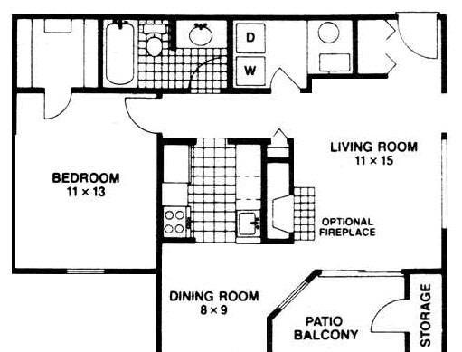 1 bed, 1 bath, 258 sqft