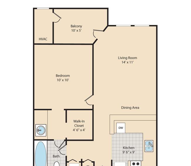 1 bed, 1 bath, 546 sqft