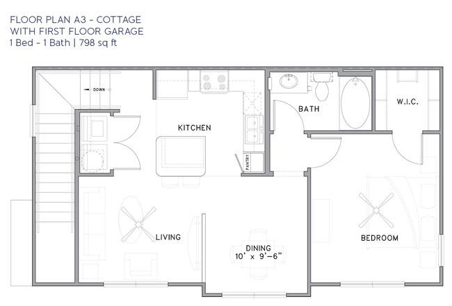 1 bed, 1 bath, 394 sqft