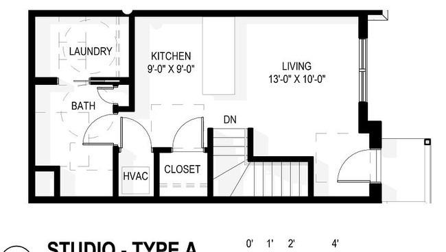 1 bed, 1.5 baths, 487 sqft