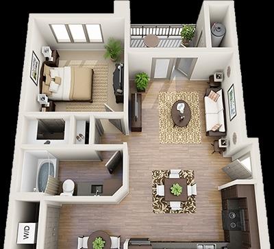 1 bed, 1 bath, 463 sqft