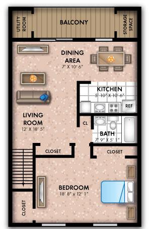 2 beds, 2 baths, 726 sqft