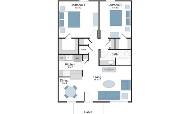 1 bed, 1 bath, 374 sqft