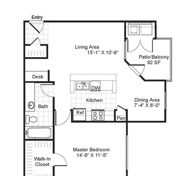 1 bed, 1 bath, 342 sqft