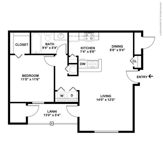 1 bed, 1 bath, 473 sqft